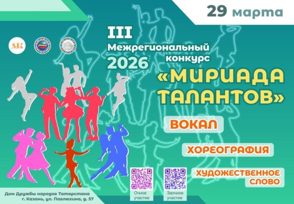 Открыт прием заявок для участия в Межрегиональном конкурсе «МИРИАДА ТАЛАНТОВ», организаторами которого выступают Ассамблея и Дом дружбы...