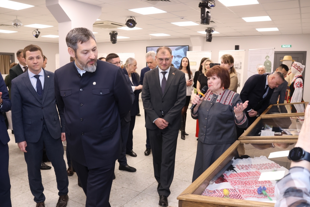 Также, гости смогли познакомиться с фотовыставкой, на которой запечатлены мероприятия с участием руководителей и представителей Татарстана и Беларуси. Председатель Местной общественной организации белорусов города Казани «Спадчына» («Наследие») Сергей Маруденко рассказал гостям о значимых культурно-политических и экономических событиях, таких как первый визит Президента Республики Беларусь А.Г. Лукашенко в Республику Татарстан, в год тысячелетия г. Казани (2005 г.) Встреча Раиса Республики Татарстан Р.Н. Минниханова и Президента Республики Беларусь А.Г. Лукашенко в рамках Международных соревнований «Игры будущего», в г. Казани, (2024) сотрудничество Республики Татарстан и Республики Беларусь в сфере экономики и промышленности, Дни культуры Республики Татарстан в Республике Беларусь (2022 г.), открытие памятника татарскому композитору Фариду Яруллину в г. Дубровно, Республики Беларусь.