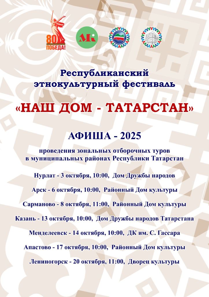 Следующий зональный тур республиканского этнокультурного фестиваля «Наш дом – Татарстан» состоится 6 октября в Арске.